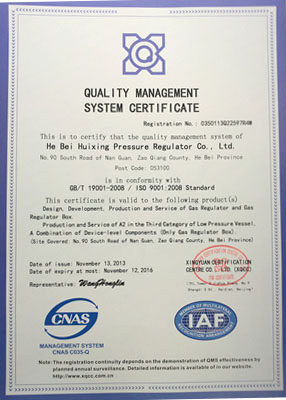主導產(chǎn)品切斷式煤氣調壓器通過河北省經(jīng)濟委員會、省標準計量局認可,獲得采用國際準認可證書